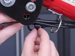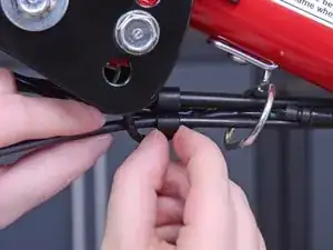 Возьмитесь за открытый конец троса газа и вытяните его из рычага газа, чтобы освободить из посадочного гнезда.