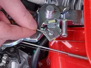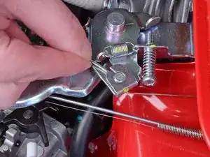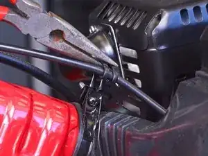 С помощью плоскогубцев с тонкими губками снимите маленькую скобу, прикреплённую к тросу газа.