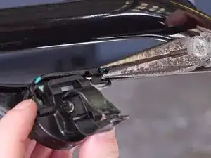 С помощью тонкогубцев загните металлическую скобу внизу колонны руля наружу и вверх.