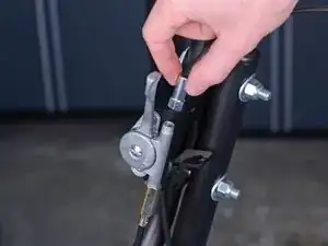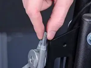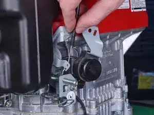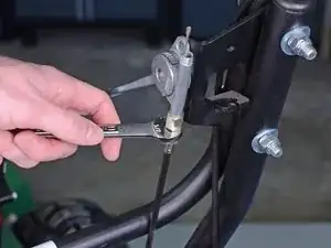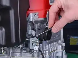 Используйте отвертку Phillips #2 для снятия винта, фиксирующего нижний конец тросика дроссельной заслонки.