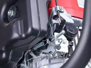 Если зубчатая рейка не отсоединяется полностью, продвиньте рычаг управления дросселем немного дальше.