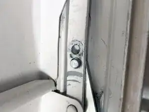 В шаге 3 убедитесь, что вы удерживаете самофиксирующуюся гайку от механизма окна. Поскольку гайка — маленькая деталь, её легко потерять. Также механизм окна может застрять: после снятия болтов можно аккуратно постучать по механизму, чтобы освободить его.