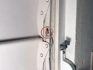 Используя крестовую отвёртку Phillips №2, снимите два болта, которые крепят механизм в раме окна.