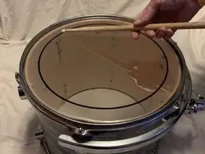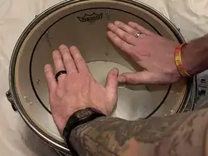 Как только вы найдете звук, который вам нравится, и барабан настроен, надавите на середину ударной мембраны, перемещаясь по барабану.