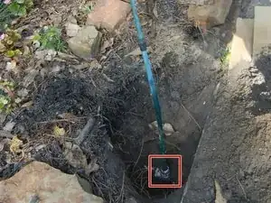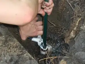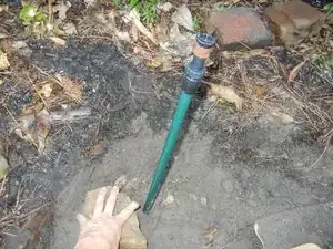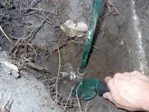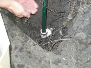 Выкопайте вокруг сломанного удлинителя яму шириной примерно один фут до места соединения с трубой.