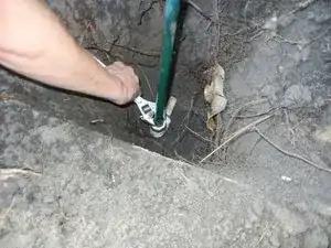 Подкопайте вокруг места соединения кельмой, чтобы обеспечить свободный доступ.