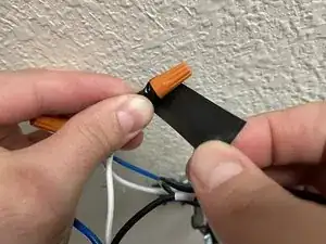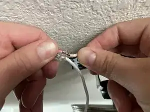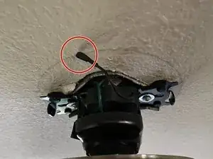 Плотно уложите чёрный (фазный/питающий) и белый (нейтральный) питающие провода обратно в потолочную распределительную коробку.