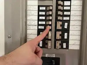 Отключите подачу электричества на вентилятор на щите автоматов.