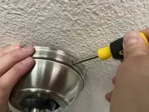 Отвинтите и снимите кожух потолочного вентилятора с монтажного кронштейна потолка.