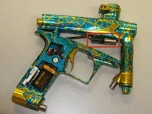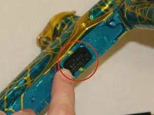 Используйте шестигранный ключ 1/8", чтобы ослабить винт внутри рукояти с правой стороны.