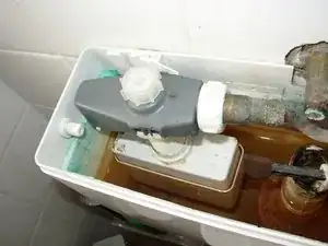 Текущий бачок может расходовать много воды — необходима срочная ремонтная работа. На самом деле это может иметь две причины: либо протекает уплотнение на выходе из бачка (колокольное уплотнение), но чаще всего неисправно уплотнение на впускном клапане, этот случай описан здесь.