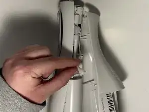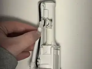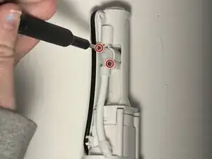 Используйте отвертку Philips #0, чтобы удалить два винта, крепящих выпускной шланг.