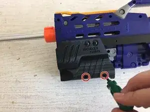 Удалите все винты, удерживающие корпус бластера, с помощью отвертки Phillips №00.