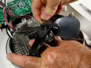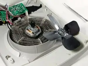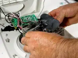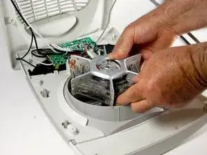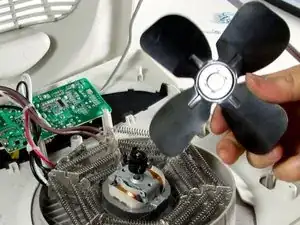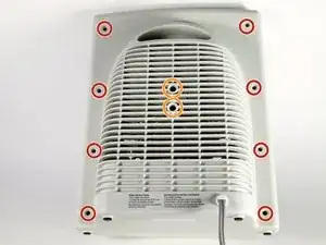 Выполняйте этот ремонт, если хотите заменить узел лопастей вентилятора. Обязательно выключите питание и отсоедините нагреватель от сети перед началом замены узла вентилятора. Винты в этом нагревателе утоплены, поэтому удобнее использовать магнитную отвертку. Примечание: при сборке устройства вы должны сначала установить 2 машинных винта, которые соединяют роторный узел с корпусом, а затем возвращать крупно-резьбовые винты. Совмещение машинных винтов может потребовать аккуратности.