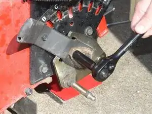 С противоположной стороны установите рычаг регулировки высоты, подшипник колеса и болт подшипника, используя торцевой ключ 1/2".