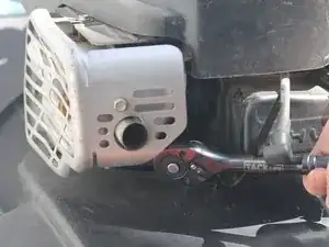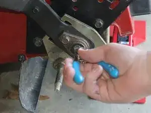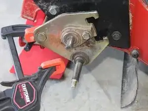 Используйте торцевой ключ 3/8", чтобы установить 2 болта на опорное ушко подшипника к нижней стороне газонокосилки.