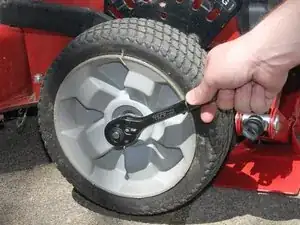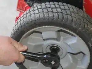 Снимите центральную гайку с колеса при помощи головки 9/16".