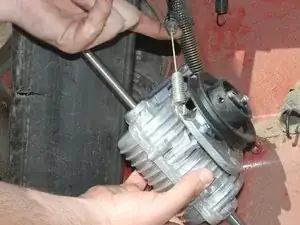 Подсоедините приводной трос к точке крепления на новой трансмиссии.