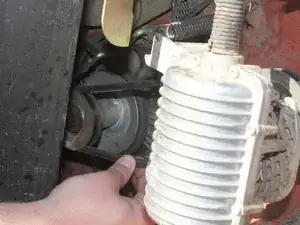 Снимите приводной ремень с двух закреплённых точек на корпусе трансмиссии и на валу двигателя.
