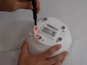 Используйте отвертку Phillips #1, чтобы удалить два винта на 7 мм, закрепляющих сетевой разъем.