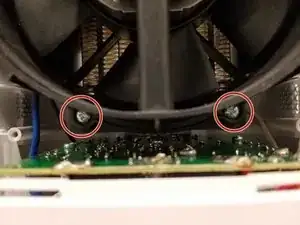 Удалите четыре винта по 14 мм, крепящие вентилятор, с помощью отвертки Philips #2.