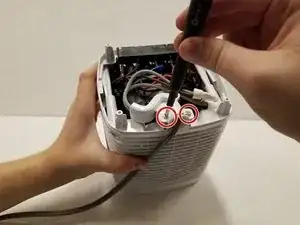 Удалите оба винта по 14 мм из корпуса шнура питания с помощью отвертки Philips #2.