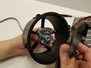 Держась одной рукой за заднюю часть корпуса вентилятора и другой за центр лопасти, вытащите лопасть.