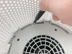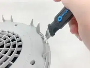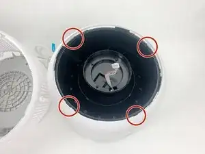 Используйте отвертку Phillips №2, чтобы выкрутить четыре винта, фиксирующие серую крышку около основания устройства.