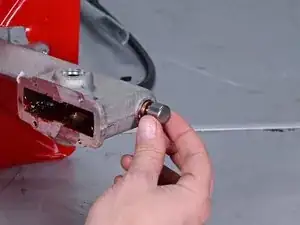 Используйте трещоточный ключ с головкой на 8 мм, чтобы ослабить фланцевый болт длиной 3/4 дюйма от фланца двигателя. Полностью снимать фланцевый болт не обязательно.