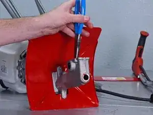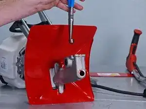 Для этого руководства потребуется использовать молоток, чтобы выбить некоторые детали, плотно посаженные на своих местах. Для этого необходимо зафиксировать культиватор, чтобы он не смещался в процессе. Можно воспользоваться тисками или попросить помощника зажать деталь, пока Вы будете работать молотком.
