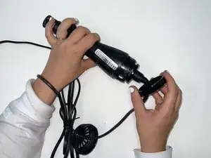 Снимите корпус-насадку, провернув и потянув его от ручки фена.