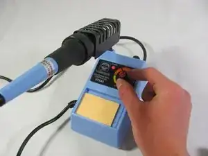 Установите паяльник на среднюю‑высокую температуру, чтобы он достаточно расплавил припой в точках соединения