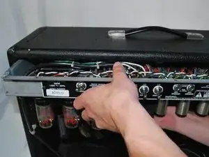 Снимите заднюю панель, открутив четыре винта на задней части усилителя. Задняя панель расположена спереди задней части головки усилителя, поэтому её нужно снять, чтобы получить доступ к входному разъёму.