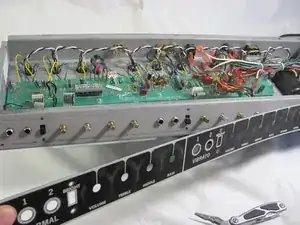 Если у вашего усилителя повреждён входной разъём, что проявляется прерываниями звука, его необходимо заменить. Это очень распространённая деталь, которая ломается из‑за постоянного подключения и отключения кабелей. В этом руководстве мы разберём усилитель, снимем головку усилителя, удалим переднюю печатную плату и заменим старый разъём на новый рабочий.