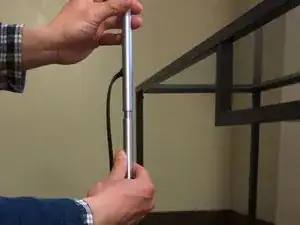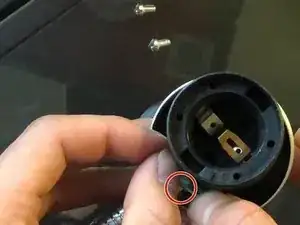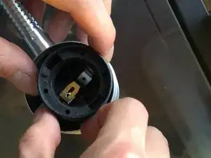 Отделите патрон лампочки от серебристой крышки, потянув за серебристый металлический зажим вниз и вправо в сторону шахты лампы.