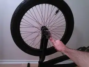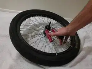 Убедитесь, что Вы сделали это до накачивания шины, так как при полной накачке шина не поместится между тормозными колодками.