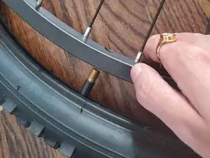 Убедитесь, что ниппель внутренней камеры протянут через предусмотренное отверстие в ободе.