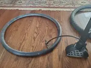 С помощью насоса наденьте новую внутреннюю камеру и немного накачайте её, пока она не станет круглой.