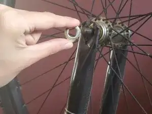 После снятия обоих болтов снимите обе шайбы, защищающие раму велосипеда.