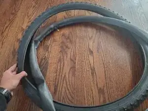 Установите внешнюю часть покрышки обратно на металлический обод.