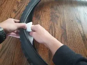 Очистите внутреннюю часть внешней покрышки тряпкой, удалив мусор.
