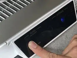 Нажмите кнопку настройки HEPA на три секунды, пока значок не станет зелёным.