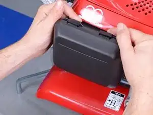 Нажмите вниз на два фиксатора, расположенные в верхней части крышки воздушного фильтра.