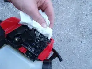 Протрите бумажным полотенцем или тряпкой все остатки масла и воды вокруг корпуса воздушного фильтра.