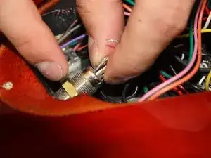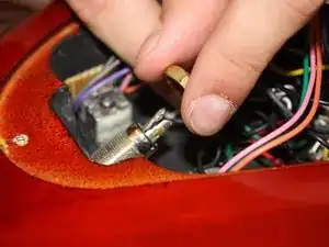 В этом руководстве Вы узнаете, как заменить выходной разъем. Замену разъема необходимо выполнить, если с басом больше нет звука, звук появляется только при неудобном расположении кабеля, или звук прерывается при движении кабеля. Ваш разъем может выйти из строя из‑за износа или деформации тонких металлических контактных элементов, которые соединяются с кабелем инструмента. К сожалению, у этой серии Ibanez разъем закрытого типа, поэтому его невозможно отремонтировать — только заменить.