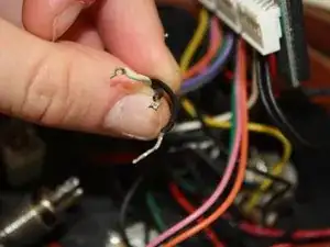 Используйте паяльник, чтобы отпаять три провода (два черных, один белый) от выходного разъема.