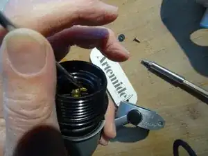 Нажмите латунный зацеп с помощью маленькой плоской отвертки на 1 мм к центру патрона. Не сгибайте латунный зацеп слишком сильно.