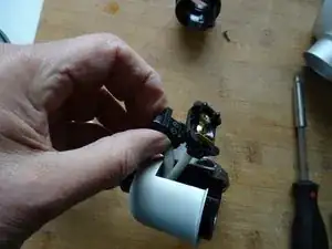 Затем отвинтите широкое кольцо на патроне.