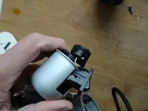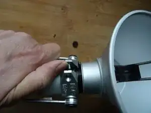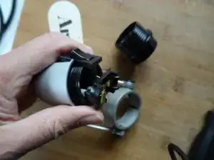Ослабьте два маленьких винта, которые соединяют внутреннюю часть патрона и выключатель с двумя линиями питания.