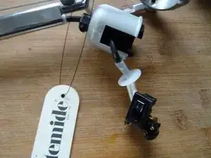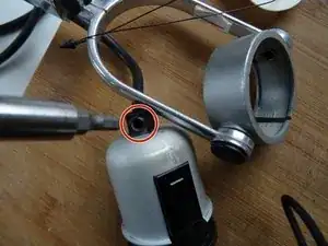 Кабель закреплен снаружи зажимом. Отвинтите пластиковый винт на шестигранное ключ, пока кабель не станет свободным.